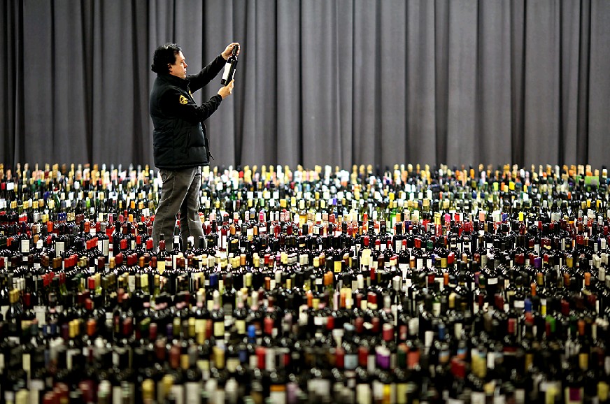一年一度的國際葡萄酒挑戰賽(International Wine Challenge)于4月21日在英國倫敦舉辦。該賽事由英國葡萄酒雜志 《Wine International 》舉辦,號稱“世界規模最大的葡萄酒競賽”。圖為一位評委在挑選參賽樣酒,評委們將對來自全球各地的超過10,000瓶葡萄酒進行品評。