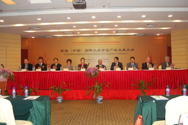 在展覽會同期,還召開了首屆(中國)國際大豆食品產業發展大會。本屆大會由中國食品工業協會豆制品專業委員會和國家大豆產業技術研發中心產后處理和加工研究室共同發起并主辦。會議開幕式由衛祥云副會長主持。中國工程院院士蓋鈞鎰、中國食品工業協會豆制品專業委員會會長王薇、商務部市場運行司安寶軍處長、國家大豆產業技術研就中心主任韓天富、中國疾病預防控制中心研究員劉秀梅、國家大豆產業技術研發中心與產后處理與加工研究室主任胡耀輝、日本豆腐協會副會長鵬橋勝道、美國大豆協會代表白樂萬、臺灣省豆腐商業同業公會聯合會理事長詹武雄等作為嘉賓出席了大會的開幕式并致辭。以“為人類提供健康、美味的大豆食品”為主題的首屆(中國)國際大豆食品產業發展大會充分體現了權威化、國際化和專業化的精神。