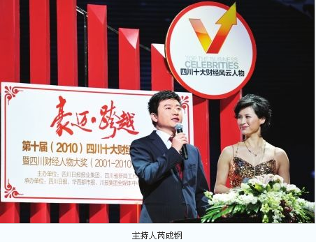 昨天的頒獎典禮由央視著名財經主播芮成鋼和四川本土金牌女主持人董凡聯袂主持。芮成鋼的智慧幽默、妙語連