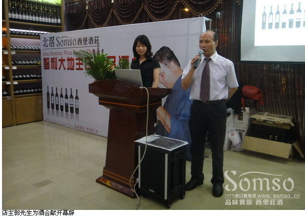 2011年5月28日晚上,順德區北滘西堡酒窖舉辦了智利大地主酒莊系列葡萄酒品酒會。大地主酒莊的莊主阿爾弗雷德先生、西堡酒莊董事長裘立新先生和兩位來自永興西堡專賣店的客人作為特邀嘉賓來到現場。酒會吸引了近70人入場,他們坐滿了酒窖的上下兩層。每個桌上都準備了豐富的下酒美食。在西堡酒莊國際采購部經理陳文麗女士的翻譯下,阿爾弗雷德先生詳細介紹了他的酒莊。隨后他又親自點評了當晚的四款用酒:大地主霞多麗白葡萄酒2009年,大地主梅洛干紅葡萄酒2009年,大地主佳美娜干紅葡萄酒2009年和大地主紅城堡干紅葡萄酒2005年。阿爾弗雷德先生用圖文并茂的方式,風趣幽默的語言向來賓講解了每一款酒的故事,觀眾也報答陣陣掌聲。每到中間的休息時間,酒會都設置了有獎問答活動,獲獎的酒都會有阿爾弗雷德先生的簽名。酒會在熱烈,歡樂的氣氛中進行著,三個小時在不知不覺中就過去了。嘉賓臨走時,北滘西堡酒窖店主郭先生還為他們送上精美的禮品。