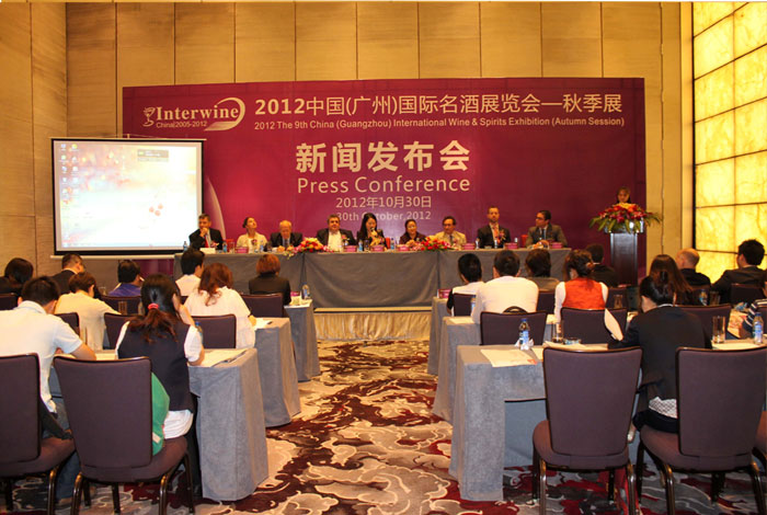 10月30日上午,“中國(廣州)國際名酒展(英文簡稱:Interwine)”主辦方廣州科通展覽公司在四季酒店就即將開幕的“2012中國(廣州)國際名酒展—秋季展”舉辦了一場高規格的新聞發布會,希臘駐廣州總領事,阿根廷駐廣州副總領事,西班牙駐廣州商務領事,美國駐廣州農業領事,智利駐廣州商務領事,西班牙卡斯蒂利亞拉曼恰葡萄酒基金會海外主席,中國法國工商會,意大利優質葡萄牙聯盟、廣東省商業聯合會執行會長、美國十六區酒業總裁等20位中外領導嘉賓出席。