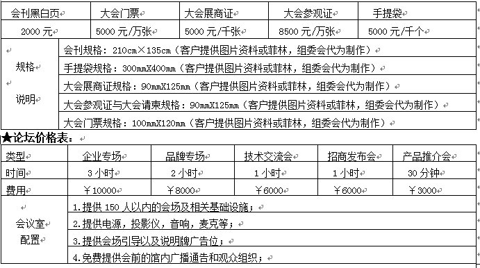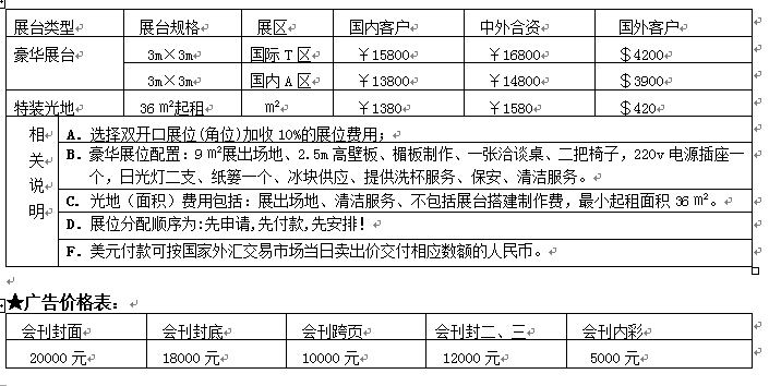 ★展臺價格表:
