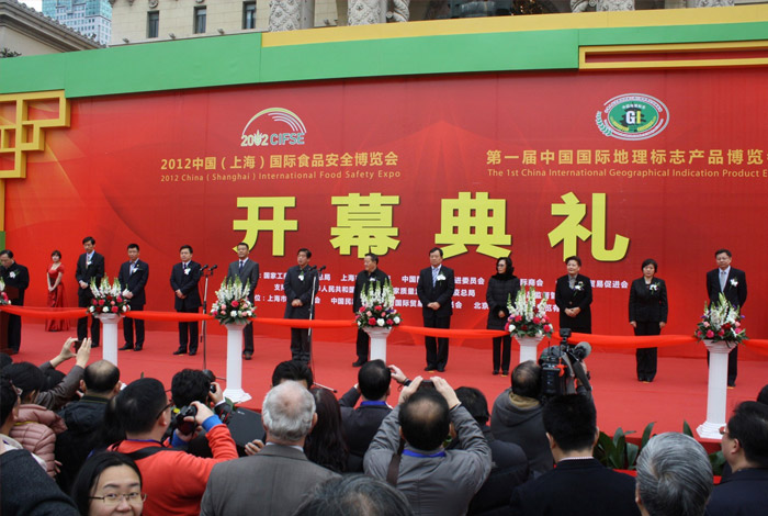 12月13日,2012中國(上海)國際食品安全博覽會、第一屆中國國際地理標志產品博覽會在上海展覽中心舉行開幕式,正式拉開為期四天的展會。開幕式現場,全國政協經濟委員會副主任李德水、國家工商行政管理總局副局長付雙建、中國民族貿易促進會會長賀黎明、中國民族貿易促進會執行會長劉延寧、中國國際貿易促進會副會長張偉、上海市人大副主任胡延照等領導到場祝賀并致辭。