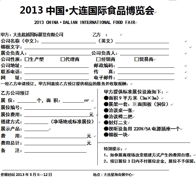 (一)參展單位請詳細填寫《參展申請表》并加蓋公章后,傳真至大會組委會;