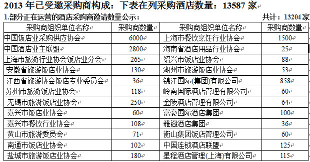 3.參會企業直接進入酒店采購供應商數據庫,作為酒店指定采購商備選   2013年已受邀采購商13587家