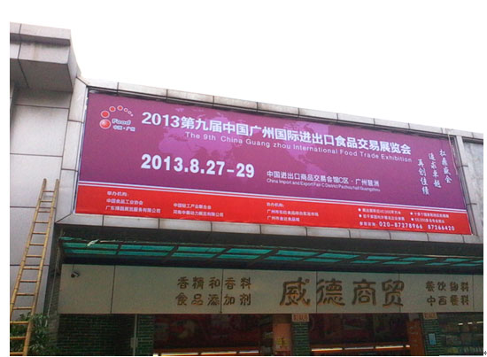 在廣州食品展主辦方的努力之下,再次與東旺食品綜合批發市場達成合作。在市場的主要通道上懸掛巨幅的“第九屆中國廣州國際進出口食品交易展覽會”廣告宣傳圖,并安排專門招商人員進駐東旺食品批發市場,向商戶及前來采購的客商提供廣州食品展信息,發放展會邀請函及門票,邀請廣大客商共享食品盛會,共享商機。