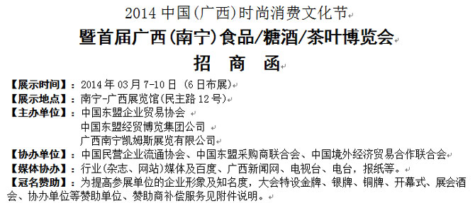 暨首屆廣西(南寧)食品/糖酒/茶葉博覽會 招 商 函