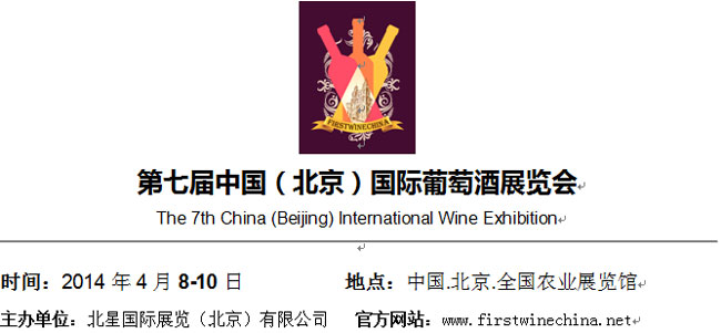 第七屆中國(北京)國際葡萄酒展覽會(First Wine China 2014),將于2014年4月8日-10日繼續在北京全國農業展覽館舉辦,歡迎您屆時參觀參展!