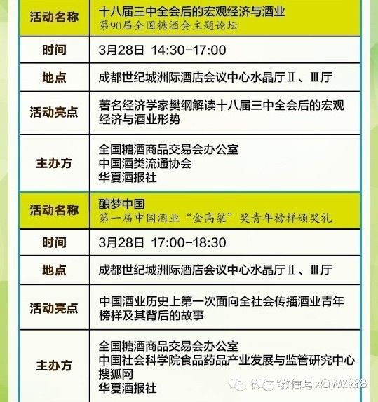 糖酒會重要活動邀請函 各位酒業同仁: 為了方便大家在春季糖酒會期間能夠科學安排日程,現將全國糖酒會辦