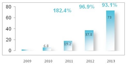 盡管酒類行業在2013年面臨急劇調整,但依然保持了一定的增長。據行業監管部門的數據顯示:“2013年,整個酒類行業產值8453.21億元,利潤1062.11億元。白酒業收入5018.01億元。”與之相對的是,酒業電商在2013年被稱為電商元年,呈快速崛起之勢。