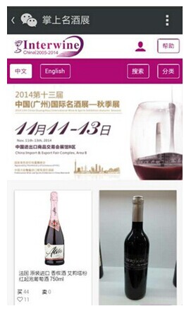 據(jù)了解,Interwine為春季展所有參展商都開(kāi)通了“掌上名酒展——掌上展位”,采購(gòu)商關(guān)注“掌上展位”后,即可在手機(jī)上找到相應(yīng)的展品及展位資訊,即使離開(kāi)展會(huì)現(xiàn)場(chǎng),也可通過(guò)手機(jī)實(shí)時(shí)關(guān)注參展商新品信息。參展商通過(guò)“掌上名酒展平臺(tái)”可與采購(gòu)商進(jìn)行即時(shí)互動(dòng),隨時(shí)了解采購(gòu)商的需求與動(dòng)向。同時(shí),參展商可獲得線上產(chǎn)品展示平臺(tái),使產(chǎn)品獲得更多人氣關(guān)注。此外,“掌上展位”還可以無(wú)縫隙鏈接至參展商的微信微官網(wǎng)作為網(wǎng)站手機(jī)網(wǎng)站使用。“掌上名酒展”