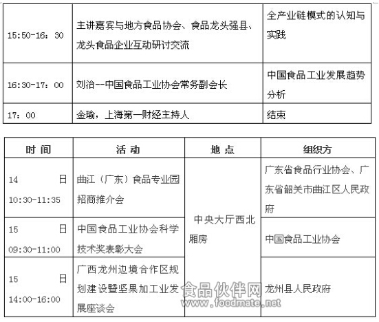 博覽會期間,同步舉辦中國食品產業壇。邀請了著名專家、學者和政府主管部門領導分別就食品企業的全產業鏈發展與食品安全、中國傳統食品產業現代之路、中國食品企業國際化與資本融合之道、大數據時代下的中國食品企業的營銷模式等論題進行探討。