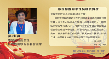 本次新聞發布會,得到了廣州市政府有關領導、駐穗外國使節、珠三角各餐飲協會和眾多業內企業的大力支持。新聞發布會共分五個環節,2015餐飲展覽會介紹與推介、世界飯店聯合會2014年會、企業簽約儀式、《世界牛人》雜志揭匾儀式和豪華歡樂答謝晚宴。原中共中央國務院副總理吳桂賢女士發來賀信,喜賀新聞發布會順利召開,并預祝2015廣州國際餐飲連鎖加盟展覽會圓滿成功。