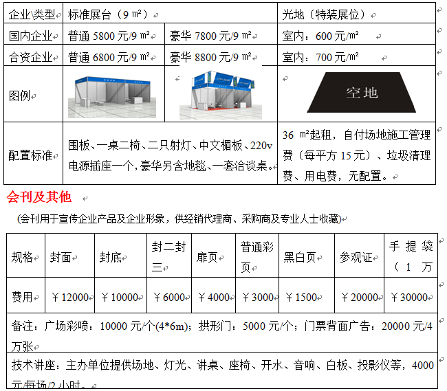 參展費用 (注:雙向開口展臺加收1000元人民幣的角位費)
