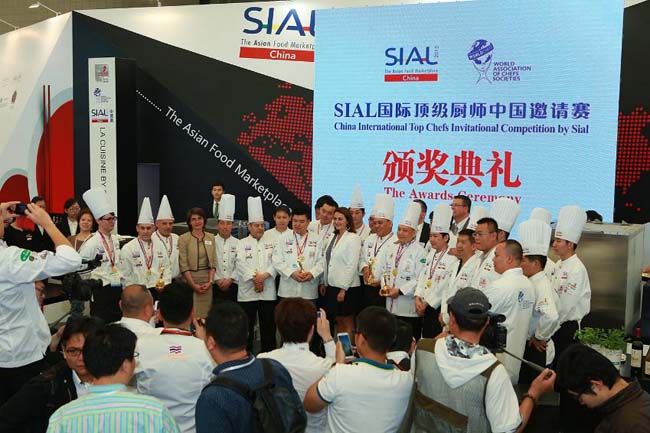 SIAL美食廚房再度與WACS(世界廚師協會)攜手,來自美國、意大利、馬來西亞、泰國的12位國際頂級大廚和來自上海、北京、廣州、浙江的12位國內頂級大廚展開了激烈的角逐。在5月7日頒獎儀式上,馬來西亞隊獲得了特別金獎,泰國隊和美國隊榮獲金獎。