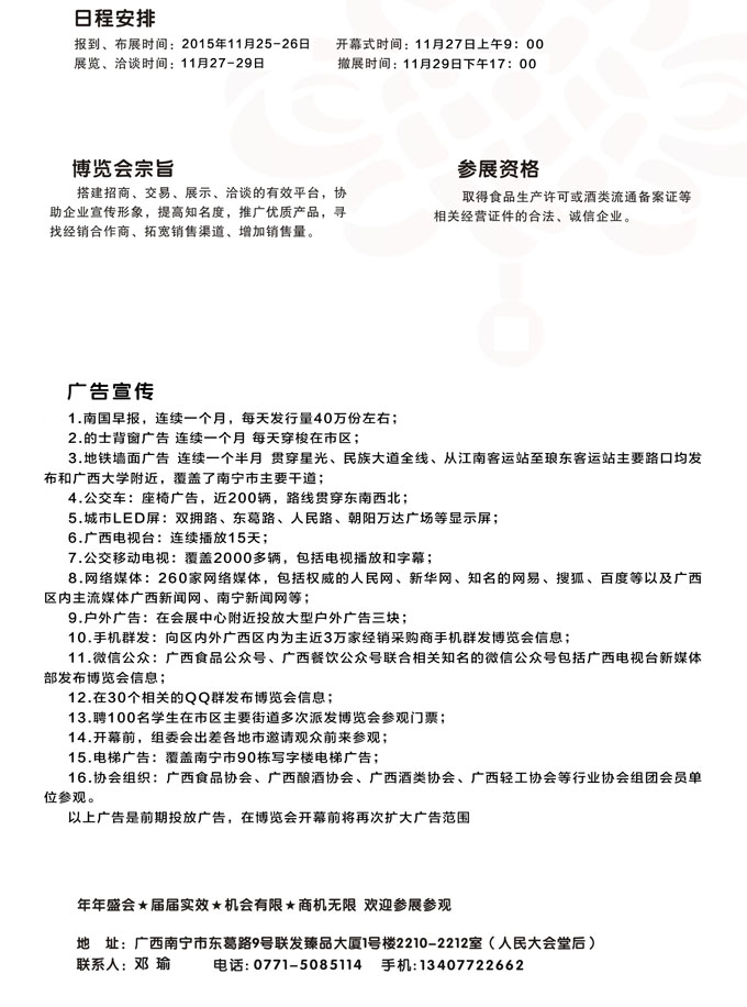 首頁展會資訊展會新聞 展會新聞 第13屆廣西糖酒會-酒類參展邀請函 未知 2015-09-17 10:14 展會新聞 上一篇第十三屆鄭州高端食飲展,助您始終立于行業前沿北京博聞食飲展訊:關于北京博聞展覽聯合中國食品行業協會、亞太綠色食品發展聯盟、中歐葡萄酒進口商會、 上一篇第13屆廣西食品交易博覽會-食品參展邀請函 相關文章 @所有酒商,選好酒、看趨勢、學經驗就來中部糖酒會!明天長沙見 2022年106屆春糖世紀城會展中心展館為酒類專區情況和展位圖 “政府+市場化”相結合模式,為2018山東糖酒會發聲 2018中部酒類食品行業——新營銷 新趨勢 新機遇 2018河南(安陽)秋糖邀展小組走訪山東濰坊和臨沂 2018河南秋糖安陽展邀觀小組走訪豫北四市 重磅!中秋重大商機盡在2018山東臨沂國際糖酒會 2018第13屆山西糖酒會蓄勢待發——集全產業鏈,匯業界翹楚,打造 2018山西秋季糖酒會乘車路線 2018山西秋季糖酒會舉辦城市介紹