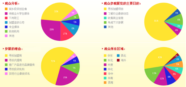 4、專業觀眾邀請:全國首次30000張免費送票(政屆10%,連鎖店35%,加盟商50%,媒體5%)、5萬張票提前發送,3萬份邀請函郵寄、同類展會派發,會務組還將與行業內的各大網站、報紙、雜志親密合作,對這些媒體的會員觀眾進行免費送票,力保投資商先行參會。