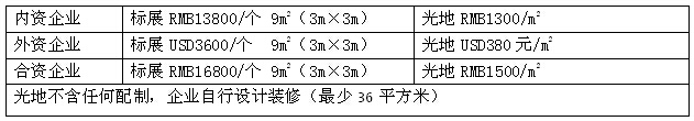 9㎡標準展位收費(包括:展出場地, 2.5m高壁板 一條中英文楣板、洽談桌一張、二把椅子、220V電源插座、射燈二支、展位內滿鋪地毯;注:雙開口展位加20%費用)
