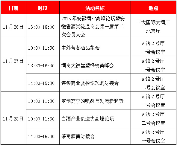14:00—15:00 安徽省酒類流通商會第一屆第二次會員大會