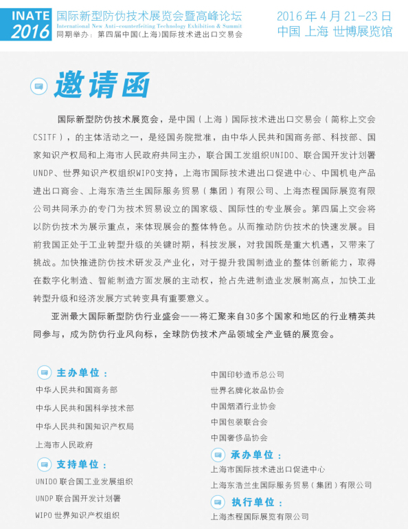 首頁展會資訊展會新聞 展會新聞 2016INATE國際新型防偽技術展覽會暨高峰論壇 中國糖酒網 2015-11-20 09:40 展會新聞 上一篇2015第11屆安徽糖酒會現場會議搶先看一、2015第11屆安徽國際糖酒食品交易會主要活動 二、活動介紹 安徽省酒類流通商會第一屆第二次會員大會暨2 上一篇中國糖酒網參展2015濟南秋季糖酒會2015第九屆中國(山東)國際糖酒食品交易會于11月2022日在濟南國際會展中心成功舉辦。作為全國三大糖酒會 相關文章 2018.11.1-3,相約上海烘焙狂歡節@2018秋季焙烤展 & 家庭烘焙展 2018莫斯科國際食品展覽會開幕 2018中國(上海)果酒產品及加工設備、包裝技術展覽會 2018 第十九屆SIAL China中國國際食品和飲料展覽會盛大開幕! 盛況空前萬眾矚目,第二屆科通(北京)葡萄酒烈酒展覽會今日隆重 2018第十屆廣州國際葡萄酒及烈酒展覽會 2018上海國際進出口食品與飲料展覽會,邀您5月共聚上海 2018第六屆上海國際生物發酵產品與技術裝備展覽會 2018第四屆中國西安國際清真食品展覽會 2018山東(濰坊)秋季糖酒食品展覽會邀請函