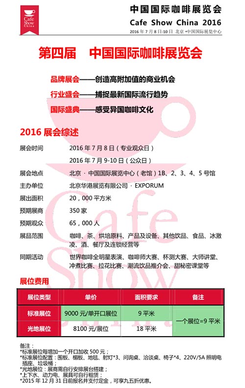 首頁展會資訊展會新聞 展會新聞 2016中國國際咖啡展 中國糖酒網 2015-11-25 09:05 展會新聞 上一篇第六屆中國(北京)國際酒店用品展覽會 上一篇法蘭克福展覽有限公司概況法蘭克福展覽有限公司是全球規模最大的展覽主辦機構之一。集團迄今已在全球設有29家子公司及約57個國際銷 相關文章 2021上海國際食品和飲料博覽會,春耕·冬食與您年末共聚美食博覽 第十一屆煙臺國際葡萄酒博覽會開幕 2018莫斯科國際食品展覽會開幕 2018第十五屆中國(青島)國際食品博覽會 展后報告 重磅!中秋重大商機盡在2018山東臨沂國際糖酒會 廣州國際健康管理展9月舉行,海外醫療熱度不減 2018第十一屆安陽國際糖酒會全面啟動招商招展 安陽糖酒會線下宣傳走進安陽航展系列活動 金秋11月,安陽國際會展中心將迎接一場大會盛宴... 2018安陽國際糖酒會線下強勢宣傳走進“2018全國食品博覽會”