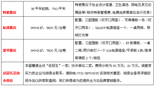 展位規(guī)格及收費(fèi)標(biāo)準(zhǔn)