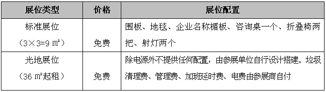 1、特裝展位:組委會免收特裝展位全部展位費用,要求參展企業必須精裝,參展企業確定參展后,需按照每個展位5000元標準繳納參展及展臺精裝修押金。如參展企業沒按參展要求進行精裝,則組委會將扣除押金。按要求精裝的企業,參展押金在展會結束后三天退還企業。