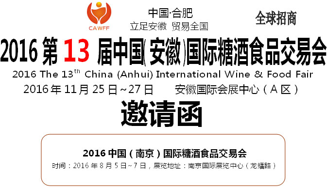 為推動(dòng)中國(guó)糖酒食品行業(yè)快速發(fā)展,2016年11月25—27日將在安徽國(guó)際會(huì)展中心繼續(xù)舉辦“CAWFF2016第13屆中國(guó)(安徽)國(guó)際糖酒食品交易會(huì)”,本屆展會(huì)組委會(huì)本著合作、互推、共贏的合作理念實(shí)現(xiàn)本屆交易會(huì)不論規(guī)模和檔次再突破歷屆之最,歡迎廣大廠商前來(lái)參展、參觀!