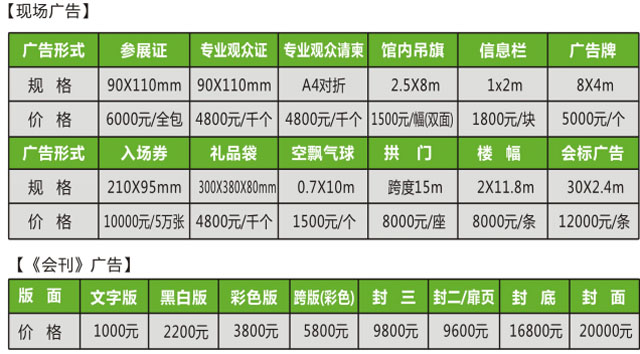 注:1、現場廣告由組委會統一確認協調安排,廣告畫面設計由參展企業提供;
