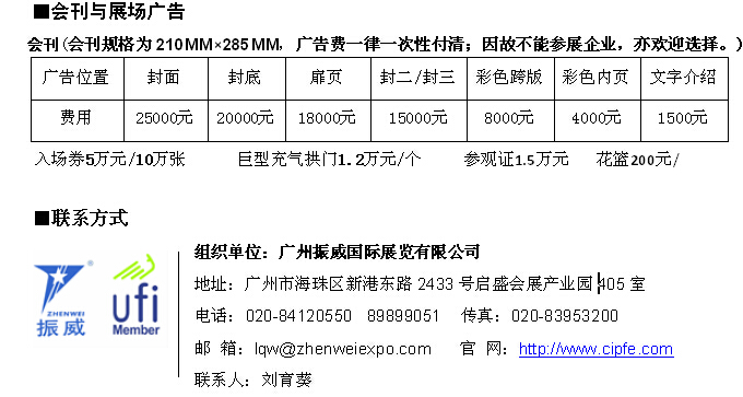 展位配置:地毯、楣板、一桌兩椅、日光燈管兩只、垃圾簍一個。