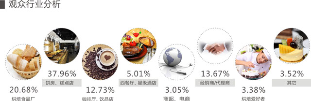 其它:咖啡、飲品設備及原料,冰激凌原料及設備,家用烘焙原輔材料、設備、烤箱、模具、包裝等,培訓機構,烘焙書刊。