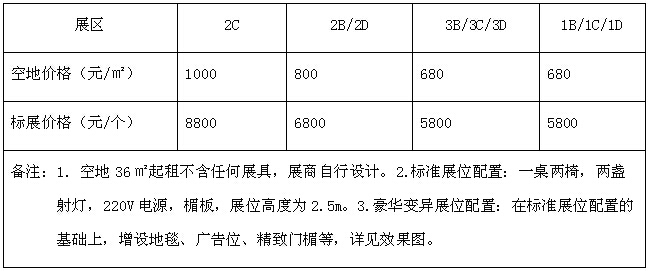 六、參展收費標準