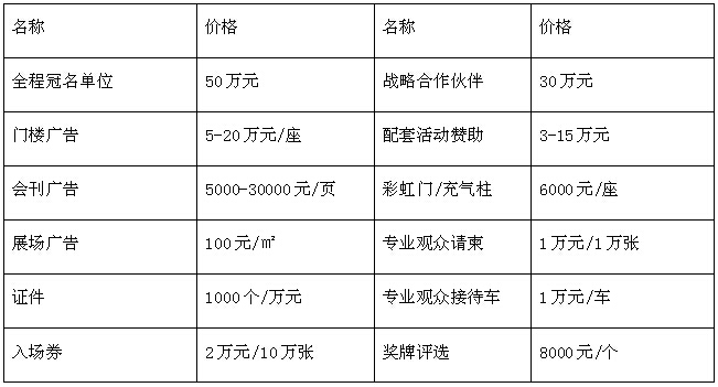 七、展會贊助及冠名收費標準