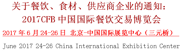 餐飲、食材、供應商企業的通知:2017CFB中國國際餐飲交易博覽會
