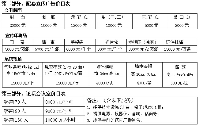 7、展前快訊、會(huì)刊、采購(gòu)指南及群發(fā)短信等特別宣傳 8、會(huì)場(chǎng)戶外顯著廣告位