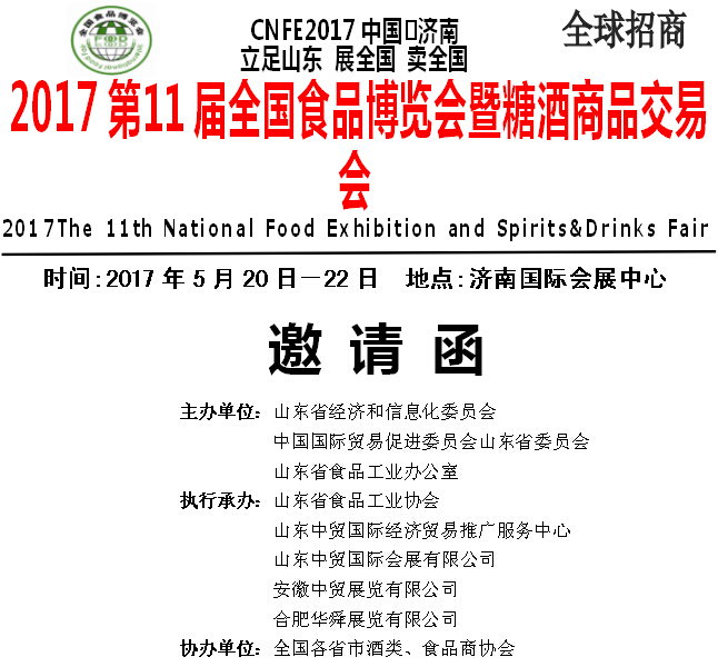 為推動中國糖酒食品行業(yè)快速發(fā)展,2017年5月繼續(xù)在濟(jì)南國際會展中心舉辦“2017第11屆全國食品博覽會暨糖酒商品交易會”,本屆交易會不論規(guī)模和檔次都將突破歷屆之最,歡迎廣大廠商前來參展、參觀!