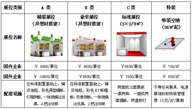 1、展位費用:注:雙面開口展位加收1000元角位費