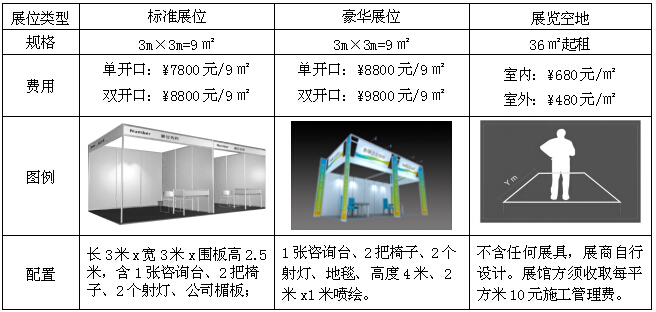 1、展位費用:注:雙面開口展位加收1000元角位費