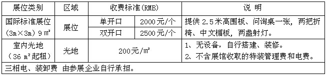備注:1、空地36㎡起租,不含任何展具,展商自行設計。