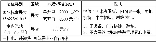 2.標準展位配置:一桌兩椅,兩盞射燈,220V電源,楣板,展位高度為2.5m