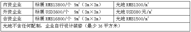 9㎡標準展位收費(包括:展出場地,2.5m高壁板、一條中英文楣板、洽談桌一張、二把椅子、220V電源插座、射燈二支、展位內滿鋪地毯;注:雙開口展位加20%費用;)