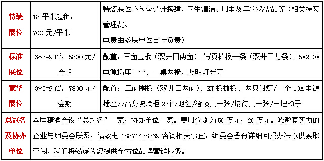 3、參展單位不得隨意轉租或更換展位,否則組委會有權取消參展資格。并嚴格按照糖酒會規(guī)定的時間安排進行布展、展示、撤展等工作。