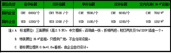 注:(1) 現場廣告由組委會統一確認協調布置,廣告畫面設計由參展企業提供。