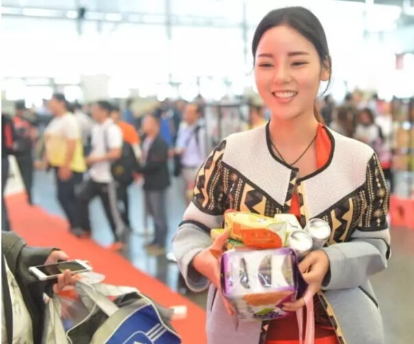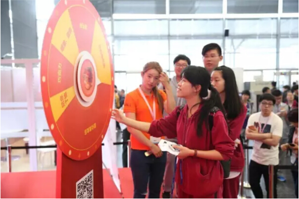 這是中食展特別為來參加展會的專業(yè)觀眾提供的“福利”性活動,所有參加中食展的專業(yè)觀眾都可以在轉(zhuǎn)盤前一試身手,獎品包含重點展商提供的進(jìn)口食品、飲料、零食和第十七屆中食展的紀(jì)念T恤等。