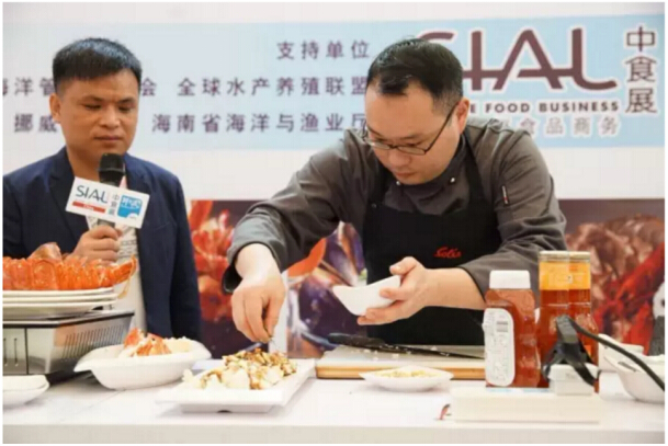 2016第十七屆中食展鮮生活活動中烹飪大師正在烹煮西澳龍蝦