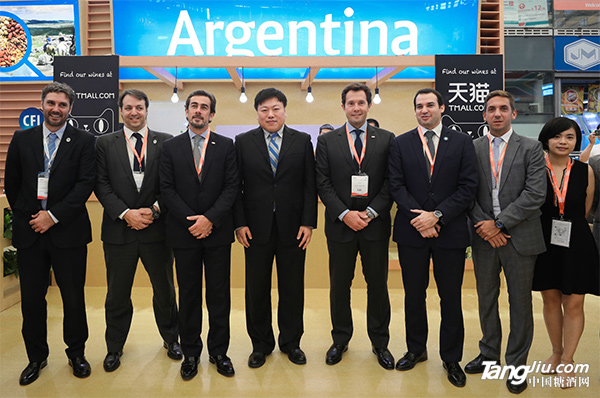 天貓食品總經(jīng)理方外(左四)與阿根廷酒業(yè)協(xié)會合影