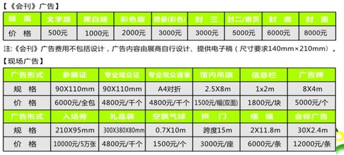 注:1、現(xiàn)場廣告由組委會統(tǒng)一確認(rèn)協(xié)調(diào)安排,廣告畫面設(shè)計(jì)由參展企業(yè)提供;