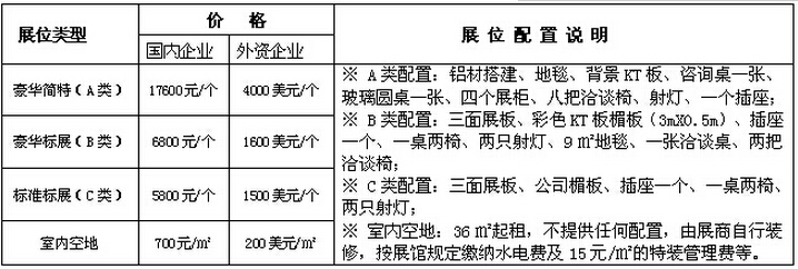 1、展位費用:(標(biāo)準(zhǔn)展位3米*3米=9平米,雙開口展位另加收1000元人民幣)