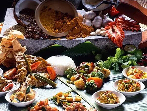 印尼地處熱帶,居民的主食是大米、玉米或薯類。由于印尼人絕大部分信仰伊斯蘭教,所以絕大部分居民不吃豬肉,而是吃牛羊肉和魚蝦之類。另外,印尼是一個盛產香料的國家,印尼制作菜肴喜歡放各種香料,以及辣椒、蔥、姜、蒜等。