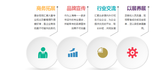 上葡萄酒烈酒展作為中國進出口酒類行業最專業的采購交易會之一,目前已成功舉辦數十屆,我們堅持“發展、交流、合作、共贏”的辦展宗旨,本著商務拓展、品牌宣傳、行業交流的核心目的,成功搭建了促進行業發展,以及國內外合作交流綠色通道與合作平臺。